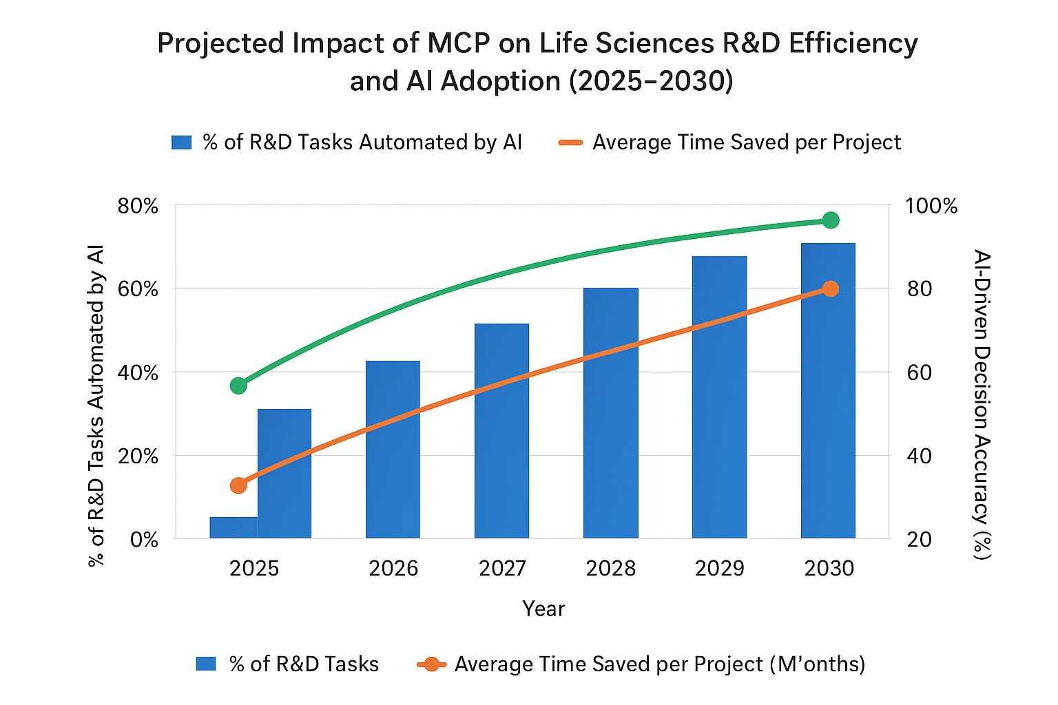 A6- ROI comes primarily from efficiency gains and better outcomes. Measure how much time MCP-enabled AI saves on routine tasks (like gathering data or generating reports) and how project timelines shorten. For example, if MCP-driven AI eliminates one redundant experiment, that could save months of work and millions of dollars. Analysts estimate that AI could unlock ~$350–$410 billion in pharma value by 2025; MCP ensures that your organization can capture more of that by using its data effectively. In practice, ROI might look like shorter development cycles, fewer late-stage failures, and more breakthroughs.